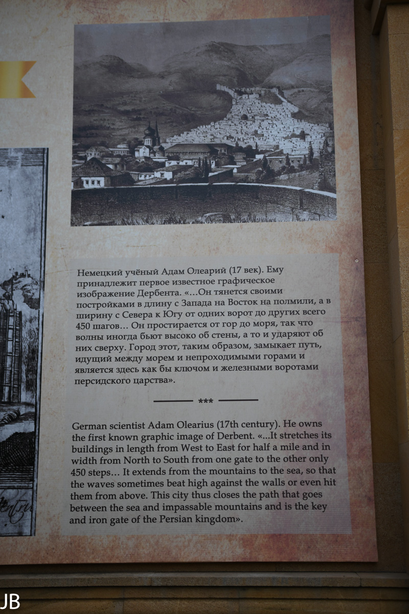 Derbent ist eine der ältesten Städte nicht nur im Kaukasus, sondern in ganz Russland. Bereits vor fünf Tausend Jahren entstand an dieser strategisch wichtigen Stelle eine erste Siedlung. Später lag Derbent an der Nordgrenze des Sassanidenreiches. Neben Rom, war das Reich der altpersischen Dynastie der Sassaniden eine bedeutende Großmacht der Antike.