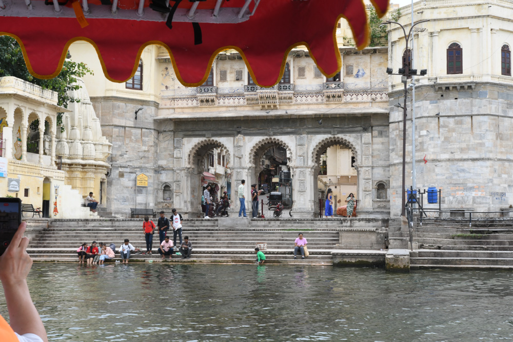 Der Jagdish-Tempel liegt auf einer von Menschenhand geschaffenen Plattform (jagati) auf dem höchsten Punkt (ca. 600 m) der Altstadt von Udaipur. Hinter dem Tempel führen zahlreiche Gassen und Sträßchen zu den Ufertreppen (ghats) am Pichhola-See hinab.