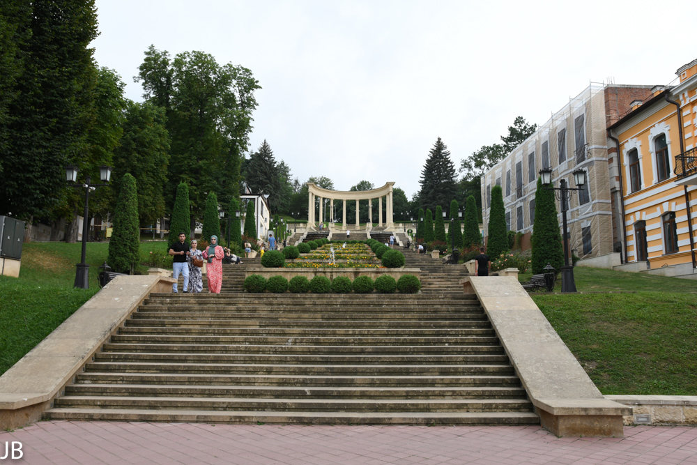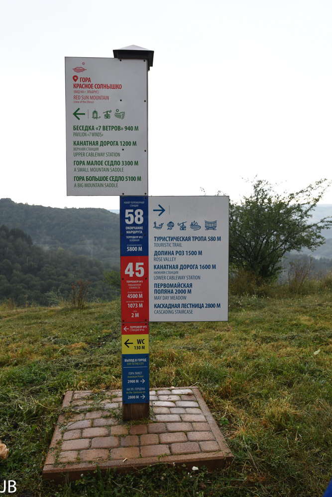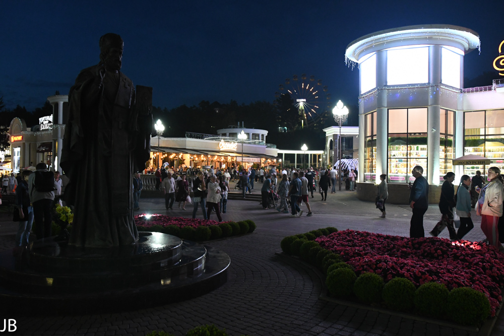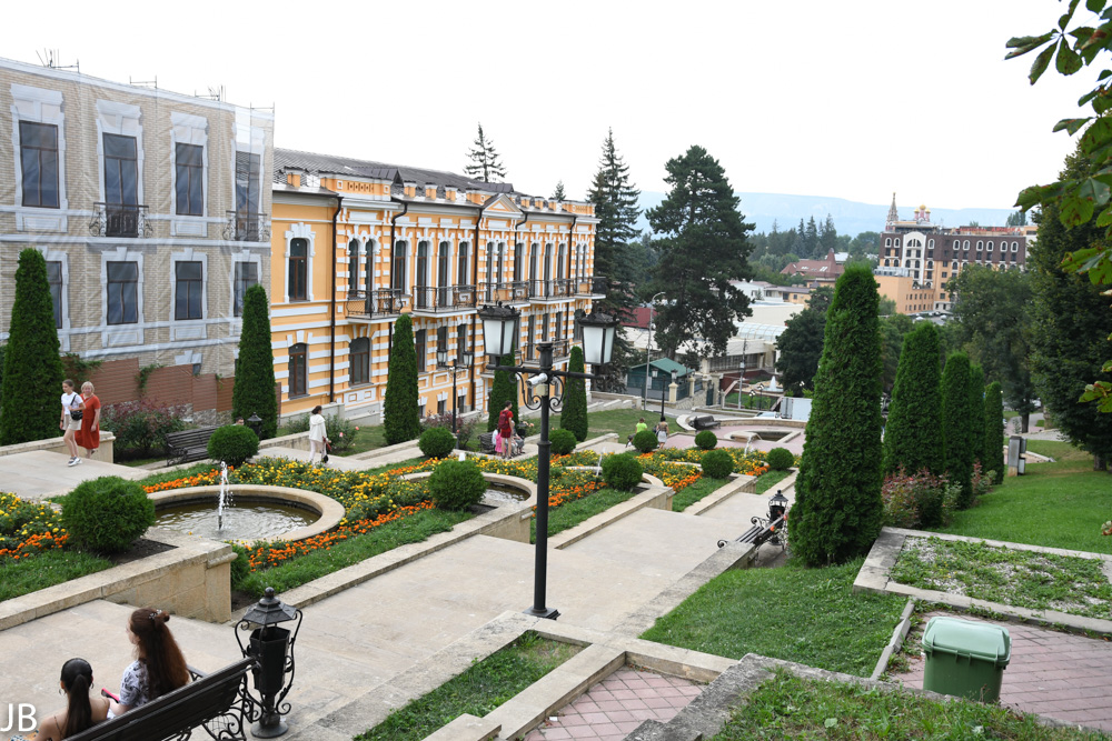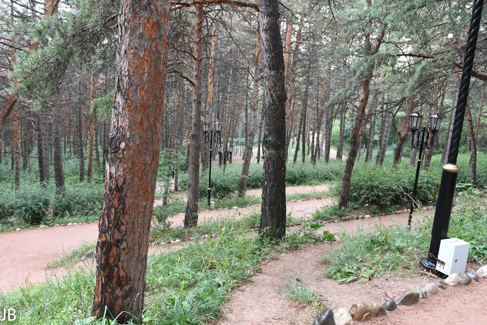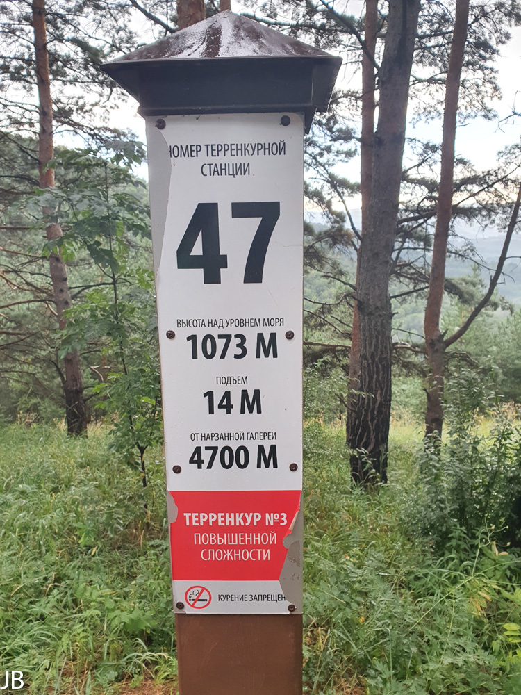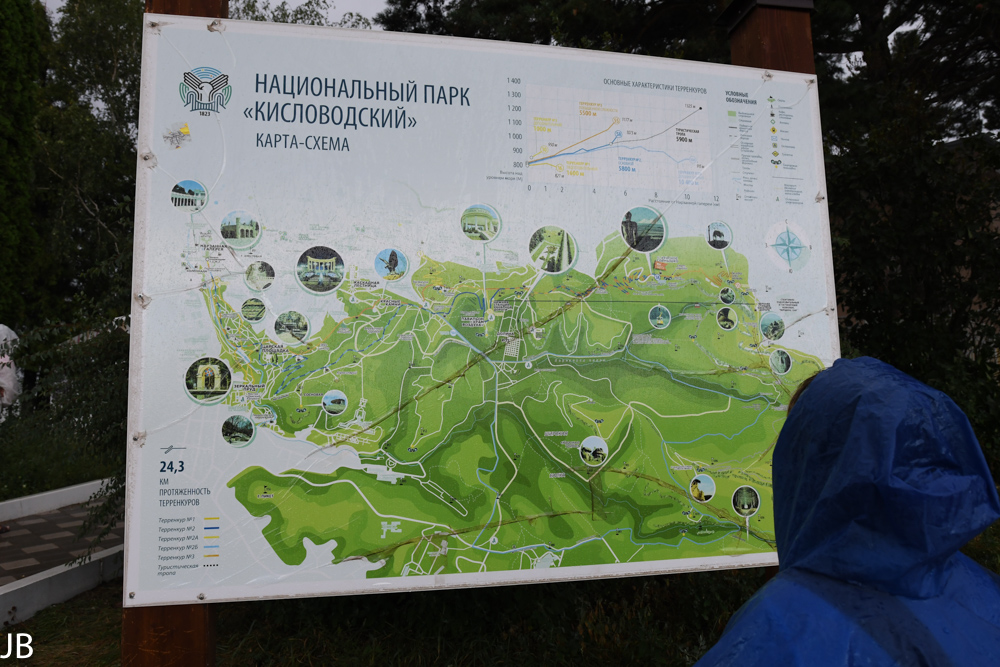 Restaurants oder Kioske untergebracht sind. Trotz des riesigen Geländes sind vor allem auf den Hauptwegen recht viele Spaziergänger und Jogger unterwegs. Für die Kurgäste wurden drei spezielle Spazier- und Wanderrouten mit geringen Steigungen angelegt. Alle 100 Meter befinden sich dort Hinweistafeln zu Entfernungen und Höhenmetern. Weg Nr. 1 ist lediglich eine kleine Runde im unteren Teil des Parks, während Weg Nr. 3 bis auf den knapp 1.200 Meter hohen Hausberg der Stadt, Maloje Sedlo, hinaufführt. Wer nicht den ganzen Weg zu Fuß gehen will, kann auch mit einer Seilbahn fahren. Im oberen Teil des Park ist bei guter Sicht die gewaltige Doppelspitze des Elbrus hervorragend zu erkennen. 2016 hat die russische Regierung das gesamte Gelände zum Nationalpark erklärt.