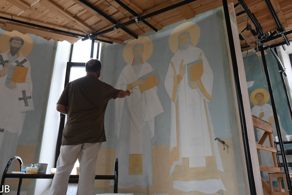Auf einen ebenfalls eher bescheidenen Vorraum folgt der Kirchenraum mit einer prächtigen Ikonostase, die den Altar von der Kirchengemeinde trennt. Die dortigen Ikonenreihen – die meisten von ihnen wurden im 15. Jahrhundert vom Mönch und Ikonenmaler Andrei Rubljow sowie seinen Schülern erschaffen – erzählen, von oben nach unten und von links nach rechts gelesen, die biblische Geschichte in Bildern. Der zentrale Bestandteil der Reihe – die Ikone der Heiligen Dreifaltigkeit, zugleich das berühmteste Werk Andrei Rubljows – ist heute in der Moskauer Tretjakow-Galerie im Original zu sehen. In den 1420er-Jahren war der zentrale Kirchenraum zusätzlich mit Fresken ausgeschmückt worden, von denen viele ebenfalls von Andrei Rubljow stammten. Allerdings sind die Originalmalereien nicht mehr erhalten geblieben. Die heutige Bemalung der Innenwand der Dreifaltigkeitskathedrale besteht aus Nachbildungen, die größtenteils in den 1630er-Jahren erschaffen wurden.