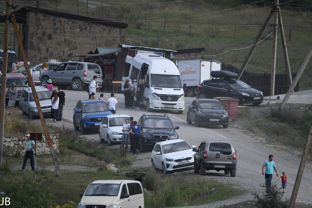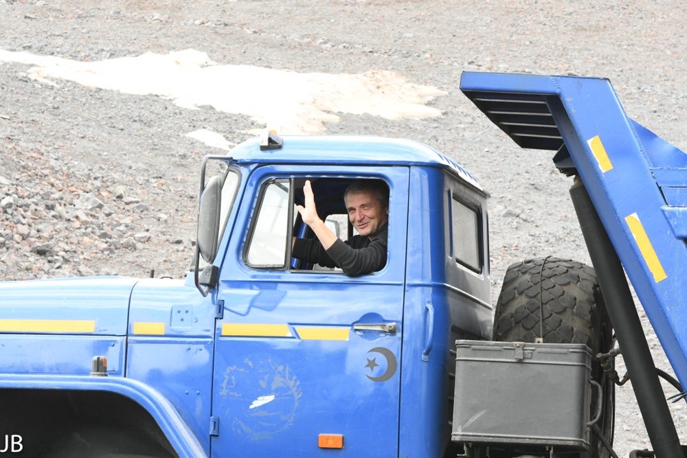 Mein Geländewagen bleibt am Hang stecken, sofort kommen Einheimische und schieben den Wagen aus der Kuhle und dann kommt die Bitte, den Wagen stehen zu lassen um dann im Newa eine „kleine“ Runde zu drehen. Neben Wodka, Gurke und Tomaten, wurde viel erzählt. Die Fahrt in die Berge hätte ich mir mit meinem Wagen nie zugetraut.