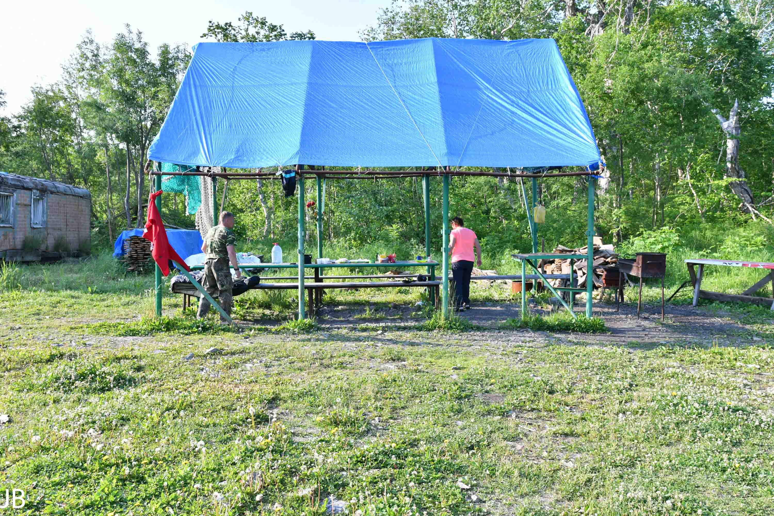 Unsere erste Nacht verbringen wir auf einem mini Zeltplatz mit Plumsklo, einem ganz netten Platzwart, und 100-tausenden von Mücken, doch vorallem der ersten heißen Quelle auf Kamtschatka.