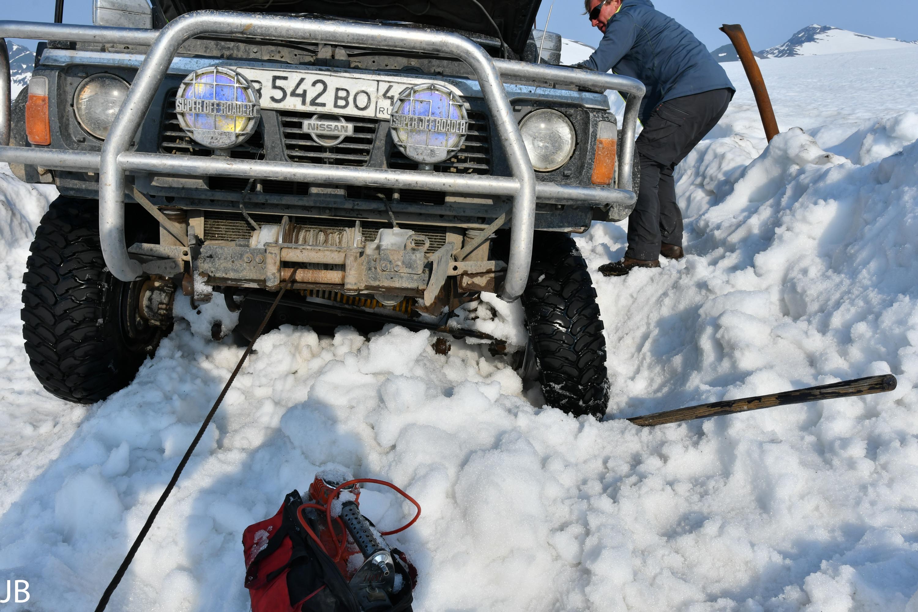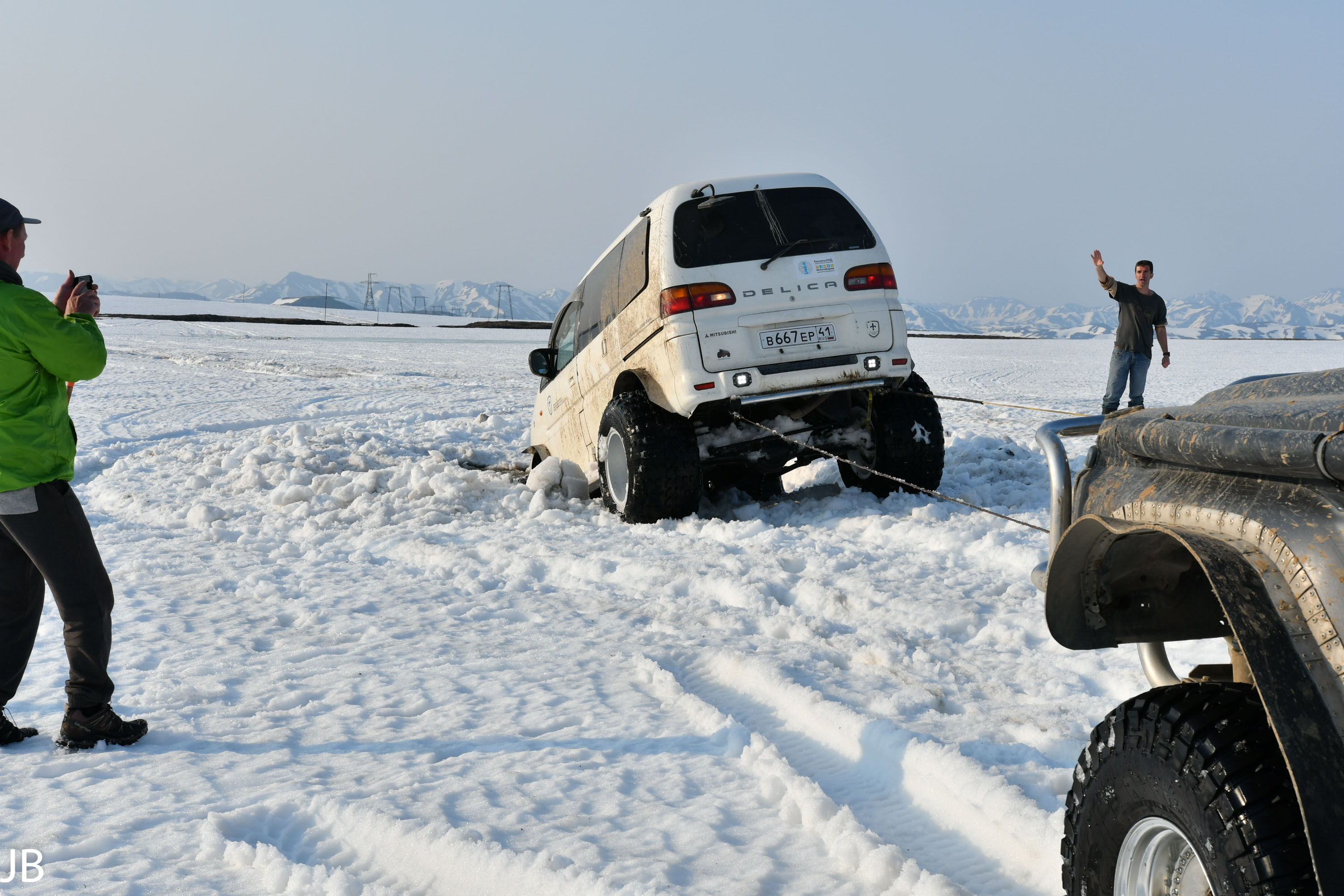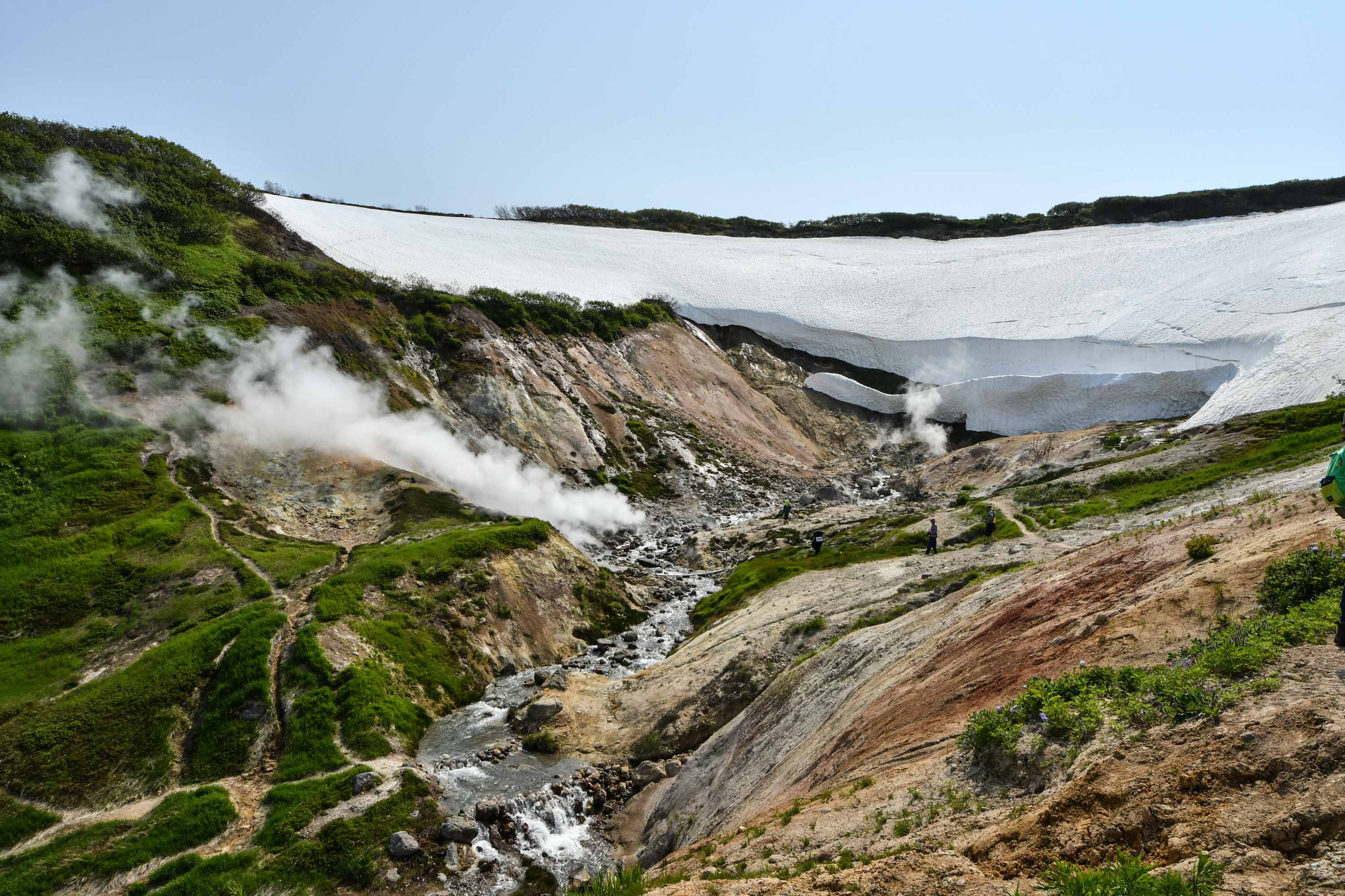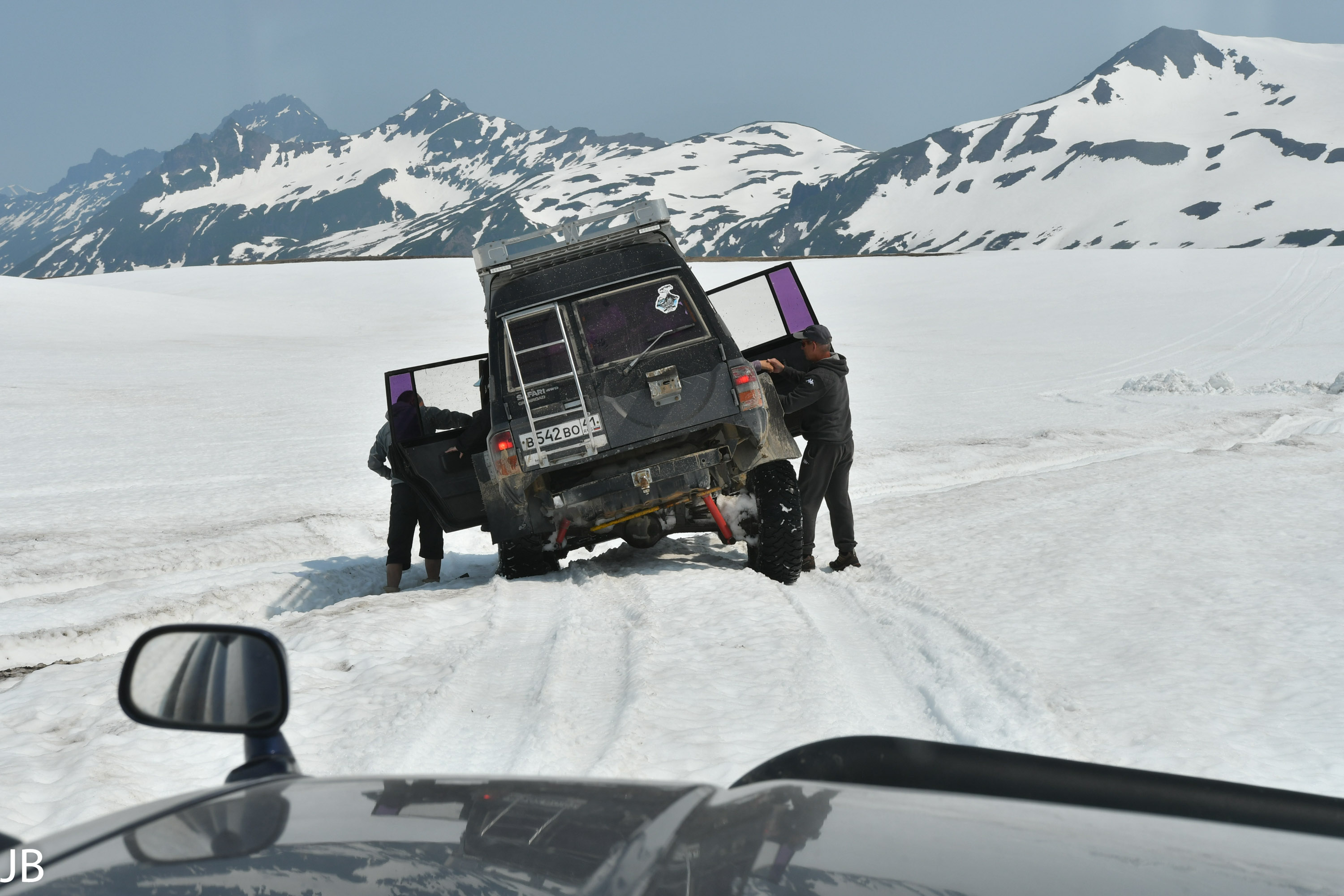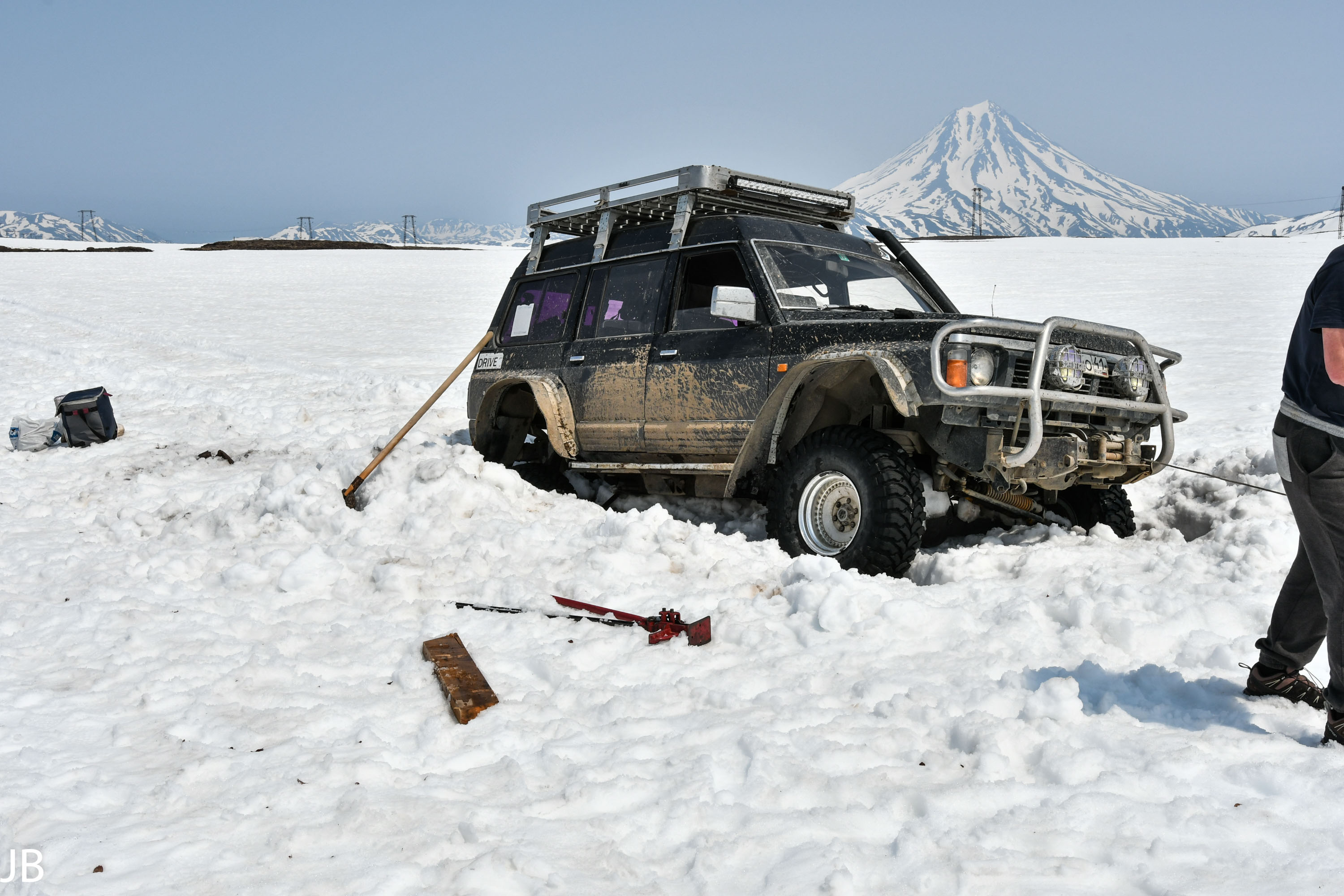Ein wunderschöner Tag endet mit viel Schnee, dampfenden Quellen und noch mehr steckengebliebenen Autos