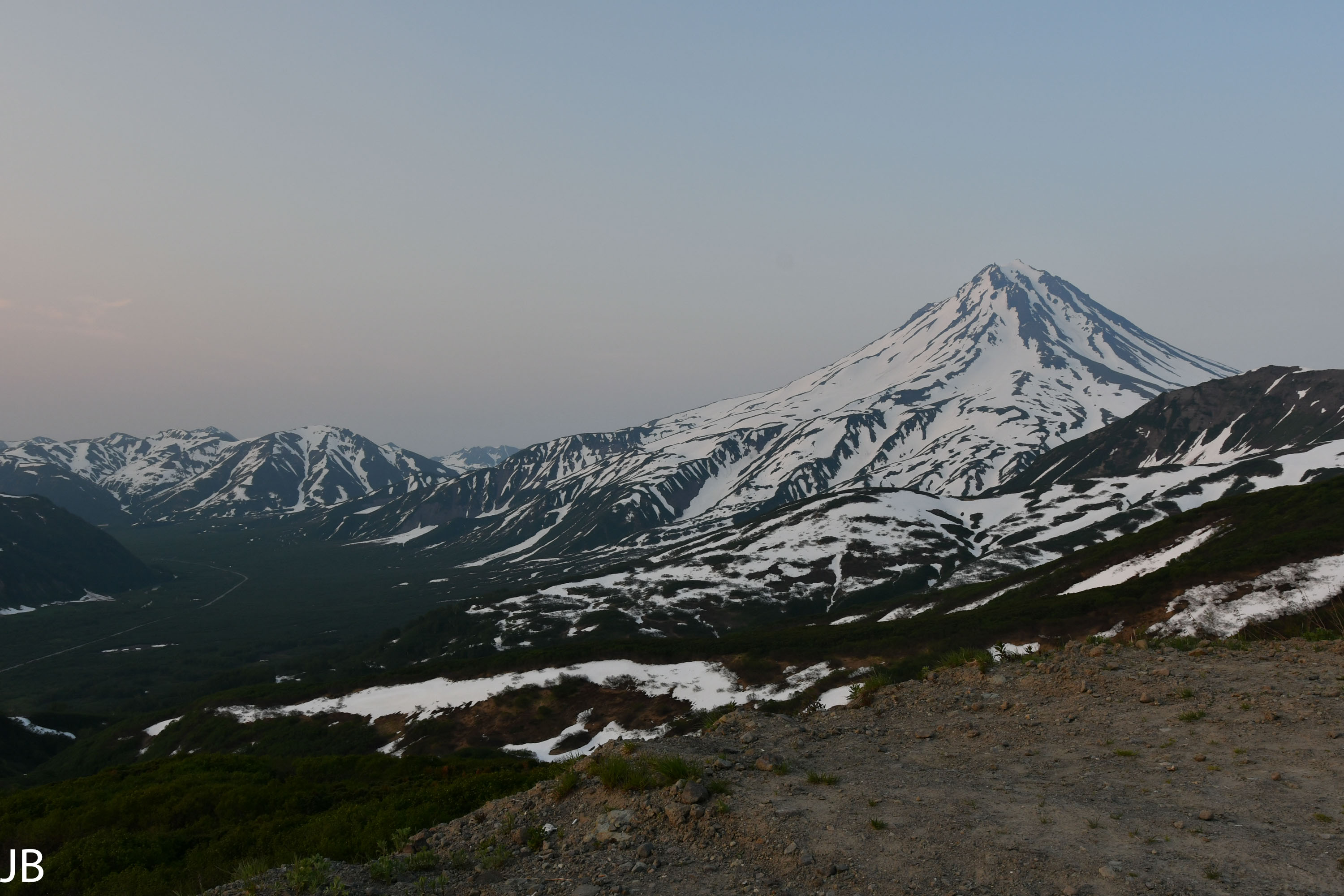 Weiter geht es im Tal am frühen nächsten Morgen in Richtung der Vulkane Gorely und Mutnovsky.